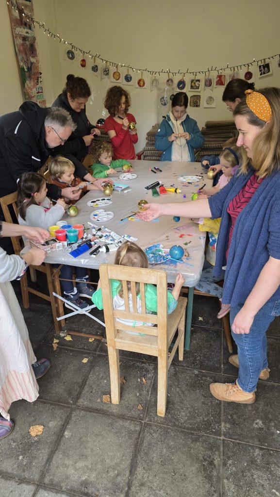 Und damit der Weihnachtsbaum richtig strahlt, haben wir die Kierberger Kinder heute morgen eingeladen, Kugeln für den Weihnachtsbaum zu bemalen.