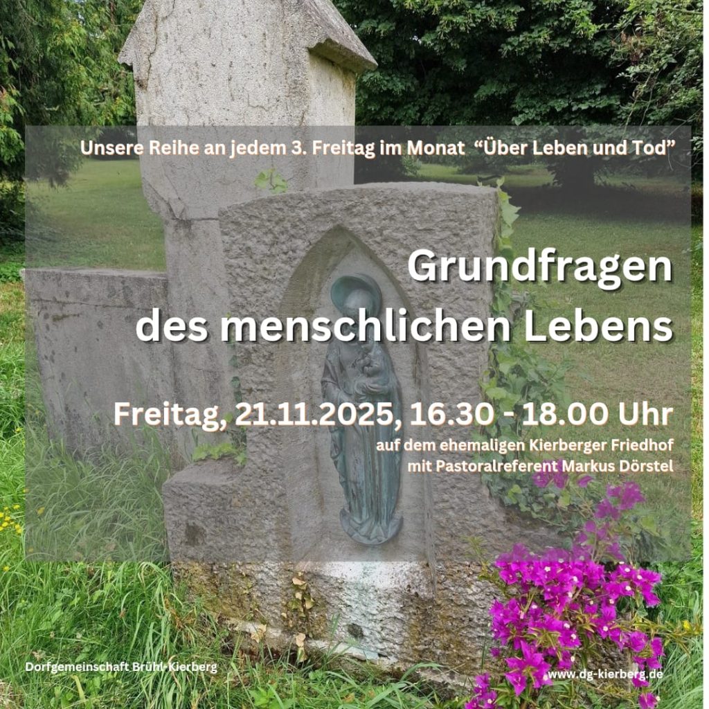 Die Mundartgeschichte “Ein Münchner im Himmel” dient uns als Einstieg. Impulse zu Leben, Sterben und Tod aus christlich-religiöserer Perspektive sollen das Gespräch zwischen allen Beteiligten eröffnen, bei dem auch persönliche Gedanken und Erfahrungen ausgetauscht werden können. Die Veranstaltung unter Leitung von Pastoralreferent Markus Dörstel richtet sich an alle Interessierten, unabhängig von Konfession und Weltanschauung.