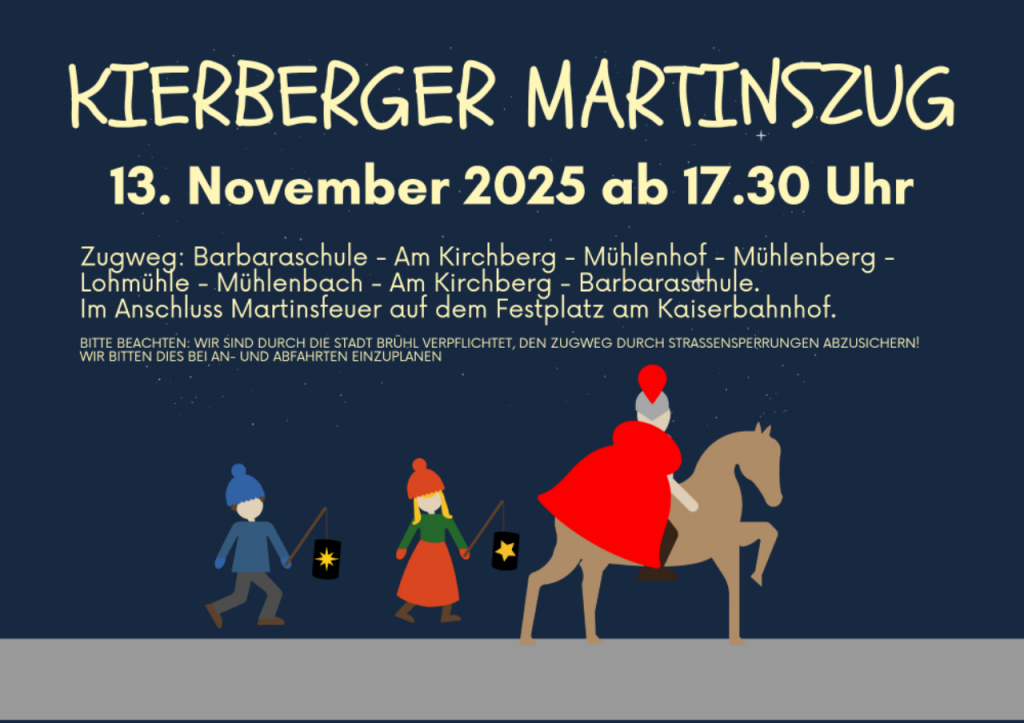 Die Kinder der Barbaraschule und der KITA Mühlenbach freuen sich sehr auf diesen Zug, bei dem sie ihre selbst gebastelten Laternen durch Kierberg tragen dürfen.